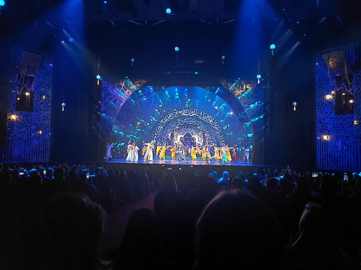 Давно не ходили на мюзиклы и вот свершилось. Мне безумно понравился мюзикл Бал вампиров в 20117 году (и мужу тоже), так что ждали события с большим нетерпением. Сразу скажу, что снимать нельзя, так что выкладываю фото с поклонов, их снимать можно. О том как выглядит зал и что покушать в буфете, можно прочитать в отдельной статье здесь. Сразу скажу что на яндекс афише все отзывы хорошие, муж написал там плохой отзыв и его не опубликовали, так что смотрим обзоры на других площадках. История обещала быть интересной: молодая пара, бытовые проблемы, магия, джины, восток, сказка, спецэффекты и много мультимедиа. Не буду рассказывать сюжет, так как это нарушение авторских прав, скажу что в целом современные герои действительно попадают в сказку и там разбираются со своими отношениями и проблемами. Главных героев несколько: это Макс и Женя (наши современники), это Джин, Алладин, Али Баба, Султан, Шахерезада. Актеры взаимозаменяемые, так что вам может попастаться состав на троечку, что было с