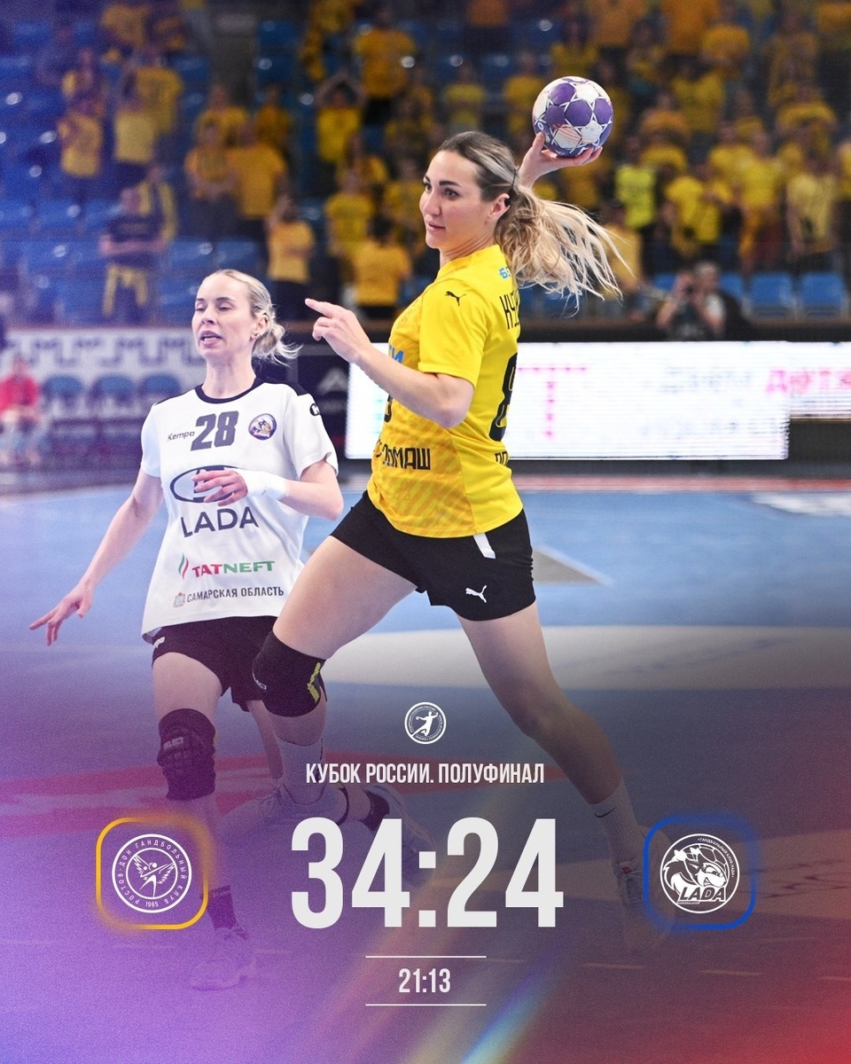 Завершился первый полуфинальный матч женского Кубка России. "Ростов-Дон" с перевесом в 10 мячей был сильнее "Лады". Соперник ростовчанок определится в противостоянии "Астраханочки" и "Черноморочки". Эту встречу в прямом эфире покажет телеканал "Матч! Игра". 19 апреля 1/2 финала Ростов-Дон - Лада - 34:24 (21:13) (Манагарова, Таженова - по 5, Зеленкова - 4; Горшенина, А.Макеева, Дворцевая - по 4) Черноморочка - Астраханочка - 16.00 (мск) Черноморочка: Кирикиас, Николаева; Вайкум, Никулина, Вакулич, Кремнёва, Сивовалова, Вигуржинская, Синельникова, Ихнева, Федосова, Н.Никитина, И.Никитина, Нефёдова, Стрельцова, Зотина. Астраханочка: Рябцева, Прокопьева, Дегтярёва; Сисенова, Юрьева, Климанцева, К.Ильина, Кайнарова, Шинкарук, Ганичева, Сивуха, Сотникова, Ковшикова, Дудина, Кириллова, Корнеева. Прямая трансляция матча доступна на портале "Гандбол ТВ" Фото: vk.com/rostovhandball