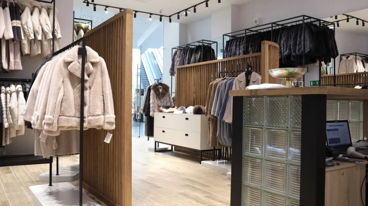 Реализация магазина шуб в ТЦ. Рассмотрели особенности дизайна,а так же как мы организацию системы хранения