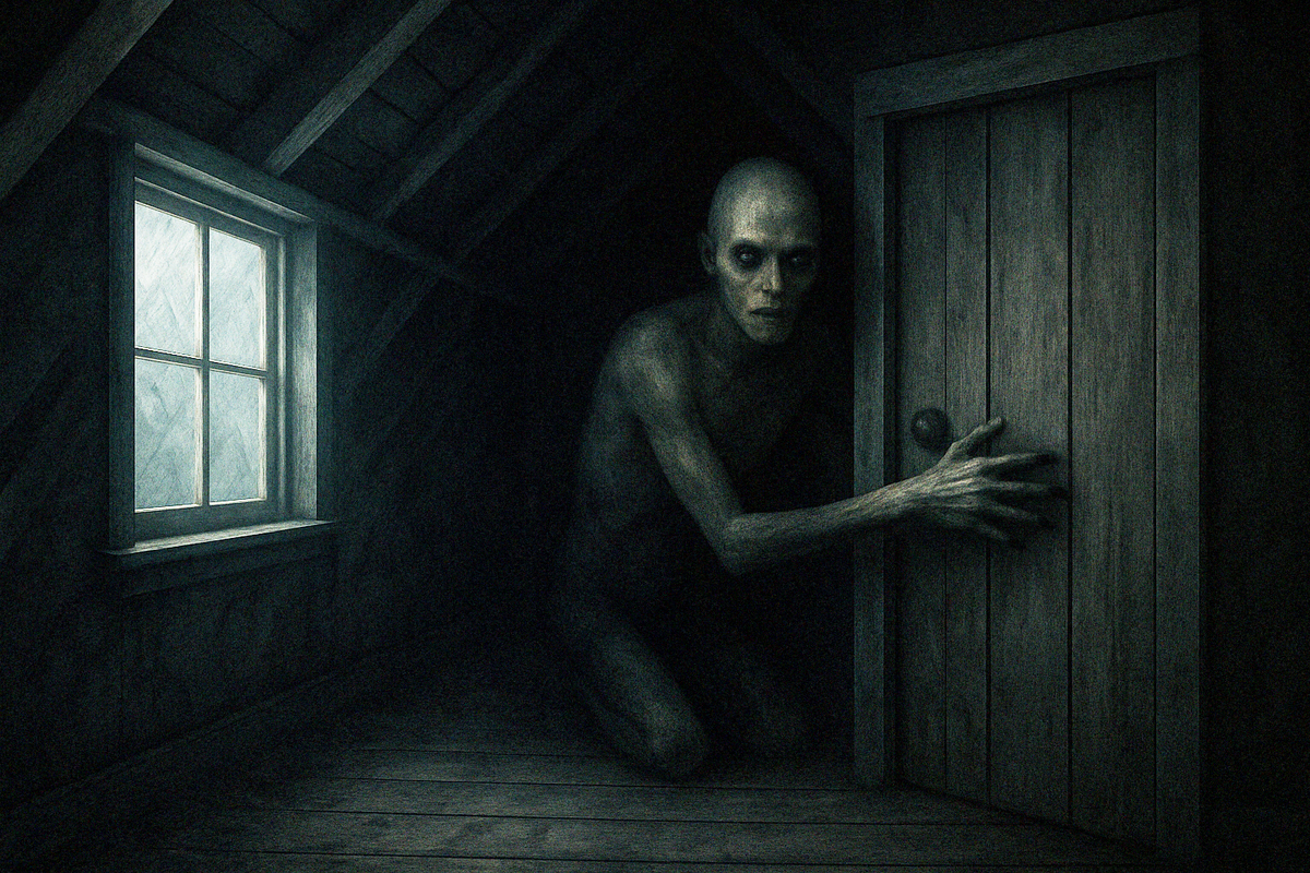 Пыль. Паутинки. Тёмные балки. Ничего не видно. Чердак закрыт. Всё выглядело... обычно. И всё же внутри поселилось странное чувство. Чувство, что там кто-то есть. Или был.