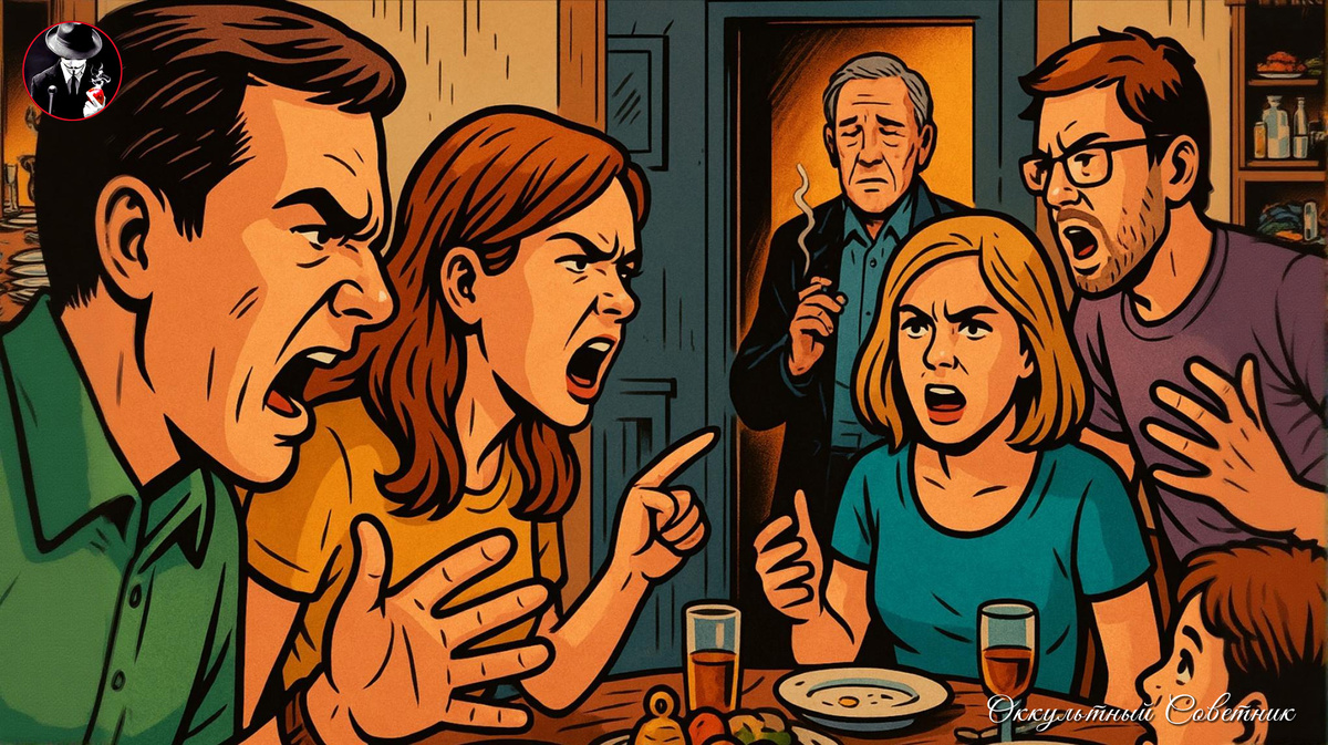 Когда все вернулись к столу, веселье угасло. Каждый думал о своём. Но через полчаса, после нескольких рюмок, напряжение снова начало нарастать. Степан демонстративно напился и начал громко выяснять отношения с Павлом, припоминая все обиды двадцатилетней давности. Их жёны присоединились к перепалке, вытаскивая на свет семейные тайны.