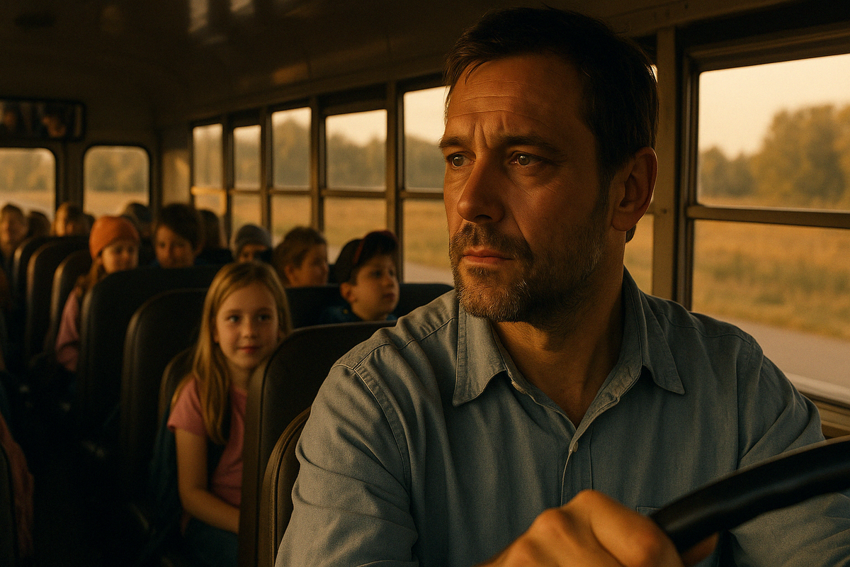 Холодный умывальник, термос с чаем, ключи на крючке у двери. Тридцать семь лет, водитель автобуса, фамилия, которую не хочется произносить вслух, и отсутствие родственников, которым можно позвонить. Всё, как всегда. Только сегодня — школьная экскурсия. Он надел чистую рубашку, что берег «на случай». Побрызгал ворот слабым одеколоном и вытер капли с зеркала. Поймал взгляд — и чуть дольше, чем обычно, смотрел на себя. Сегодня что-то чувствовалось иначе. — Садитесь аккуратно, не толкаемся, — проговорил он ровно. — Рюкзаки — на колени, окна — не открываем. Третьеклассники болтали, смеялись, пересаживались. Кто-то грыз яблоко, кто-то жевал жвачку, кто-то просто смотрел в окно. Он не вмешивался. Пусть будут детьми. Он сам — не совсем успел. В зеркале заднего вида мелькали светлые волосы, рюкзаки с героями мультиков, вязаные шапки, чьи-то заплаканные глаза и чьи-то счастливые. О