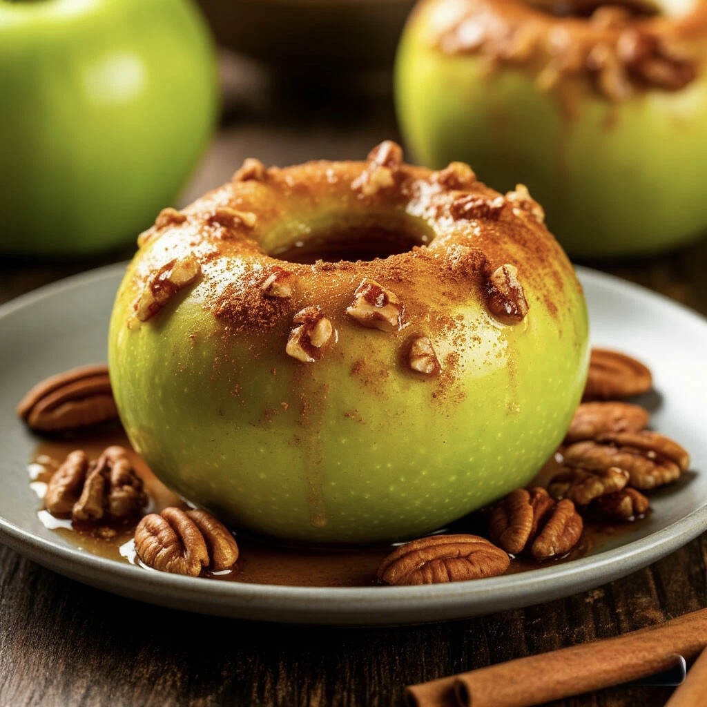 Всех приветствую 🖖 Сегодня я поделюсь с вами рецептом печеного яблока с медом , орехами и корицей. Хорошо подходит кто держит пост , или кто не устал от привычных десертов — Выход на одно яблоко весом примерно 100-150 грамм 1️⃣Необходимо убрать сердцевину яблоко , это можно сделать ножом или яблокорезкой 2️⃣Мелко измельчить орехи 3️⃣ Смешать орехи с мёдом и корицей 4️⃣Полученную смесью нужно начинить яблоко 5️⃣Выпекать в духовке при t180 10-15 минут ☝️А теперь несколько советов в приготовлении блюда Для запечённого яблока лучше брать зелёный сорт, потому что такие яблоки имеют крепкую кожуру и твёрдую кислоту , не слишком сладкую мякоть. Это позволяет плоду не потерять форму в духовке под воздействием высоких температур. Орехи лучше всего использовать грецкие , они лучше всего сочетаются с мёдом и корицей Мёд можно брать абсолютно любой , но лучше всего конечно же цветочный. Яблоко можно подавать с любимым вашим соусом , клубничным , смородиновым , вишневым , брусничным
