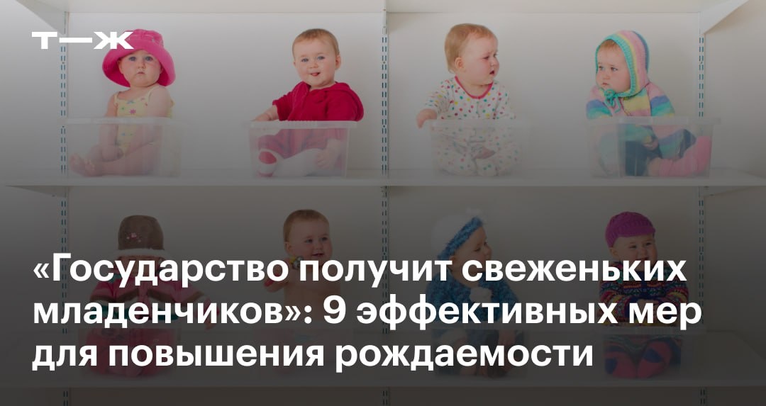 👩👦 Надо поощрять тех, кто работает в белую, имеет трудовой стаж, делает отчисления, и этому контингенту давать жилье. Пусть не в подарок, а в беспроцентный заем от государства. И на вторичку, и на первичку, и на дом в сельской местности. 👩👦 Чтобы женщины рожали, должна быть полная невозможность отвертеться от алиментов у отцов, которые выходят за хлебом. Также мамам надо помогать с трудоустройством и гарантией места в саду с полутора лет — то есть сразу, как заканчиваются декретные выплаты. 💱 Читатели Т—Ж поделились своими идеями о том, чего не хватает людям, чтобы решиться на пополнение в семье: https://j.t-j.ru/d-tg/bolshe-detey