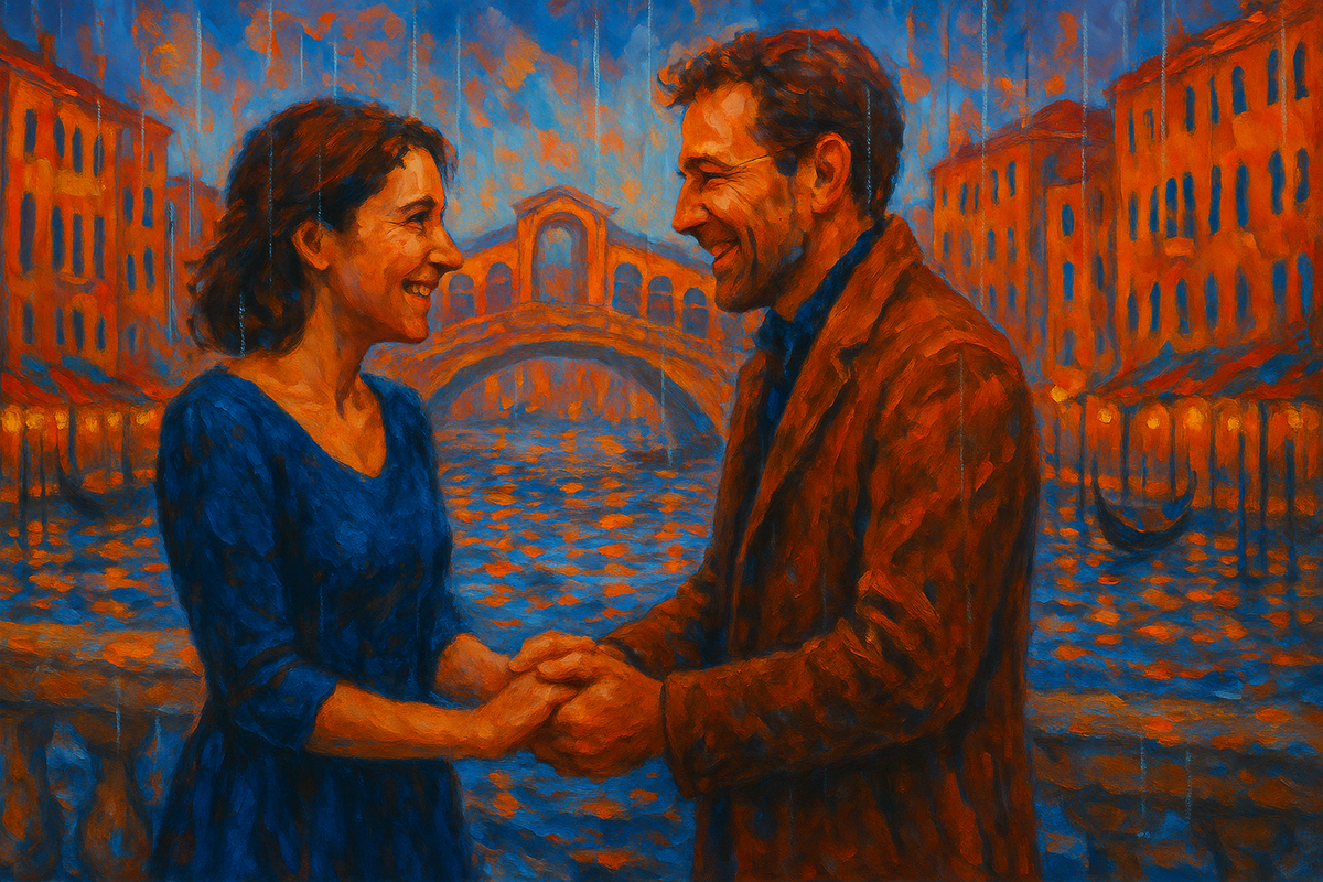Елизавета Петровна задержалась в офисе допоздна. Сорокалетие, отмеченное неделю назад, оставило горький осадок. Разведена, дети выросли, карьера застыла на месте — не о такой жизни она мечтала. — Лиза, тебе письмо, — окликнула уходящая секретарша, положив на стол конверт без марки. Внутри лежала открытка с видом Венеции и короткое послание: «Ты по-прежнему прекрасна. Помнишь наш уговор?» Подписи не было, но сердце Елизаветы пропустило удар. Двадцать лет назад они с Игорем, однокурсником и первой любовью, поклялись встретиться на мосту Риальто, если к сорока годам останутся одинокими. Глупая романтическая фантазия студенческих лет. После выпуска их разбросало по разным городам. Она вышла замуж за перспективного юриста Олега, родила двоих детей. Игорь, по слухам, уехал в Италию. — Это какая-то ошибка, — убеждала себя Елизавета, но письма продолжали приходить. — Мама, что с тобой? Ты как на иголках, — заметил сын Кирилл за ужином. — Просто устала, — солгала она. На третьей открытке был но