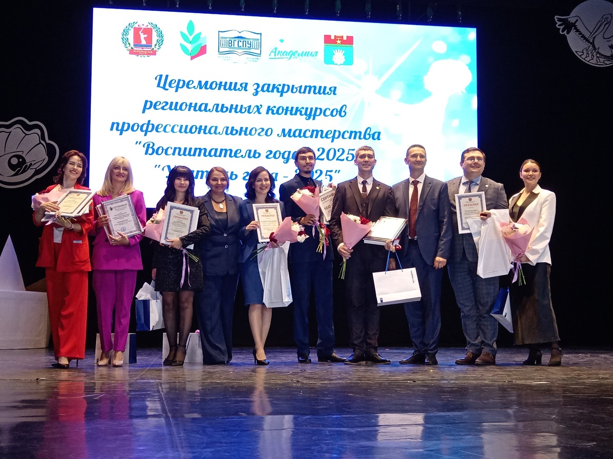 В Волгоградской области выбрали лучших «Учителя года» и «Воспитателя года» Как сообщили журналистам телеканала «Волгоград1» в облкомобразования, в Волгоградской области подвели итоги сразу двух профессиональных конкурсов. Так, «Учителем года» стал преподаватель географии лицея №9 Дзержинского района Волгограда Вячеслав Песчанский, а «Воспитателем года» — педагог центра развития ребенка №4 Краснооктябрьского района Анна Серышева. Помимо права представлять Волгоградскую область на федеральном уровне, в этом году победители регионального этапа получили денежные премии. Отметим, в этом году на звание лучшего воспитателя претендовали 32 работника отрасли, в конкурсе «Учитель года - 2025» также участвовали 32 педагога. Конкурс помогает не только повышать профессиональные навыки, но и раскрывать творческий потенциал. Фото – пресс-служба региональной администрации.