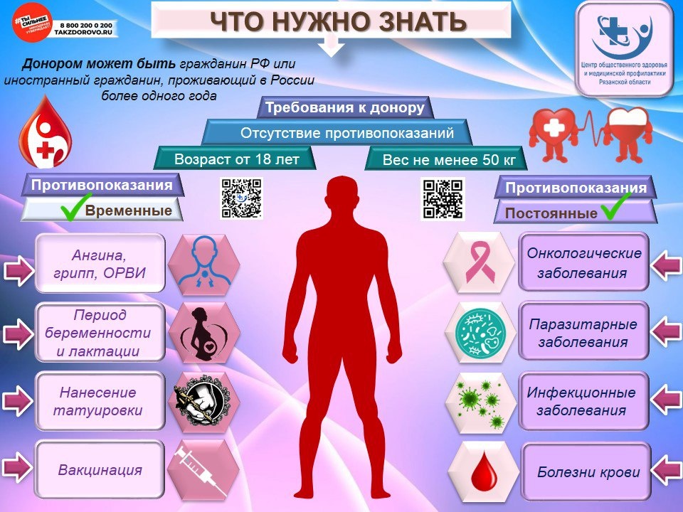 🌟Идет Неделя донорства крови в России! 🌟 🗓 С 20 апреля— в честь Национального дня донора — каждый из нас может стать частью большого дела, подарив надежду тем, кто в ней нуждается. ❓Почему это важно? ✅ Спасайте жизни: Одна донация может сохранить до трёх жизней. Ваша кровь — это шанс на выздоровление для детей, взрослых, будущих мам и пострадавших в ЧС. ✅ Здоровье донора Научно доказано, что регулярная сдача крови (до 500 мл): - 🩸Стимулирует обновление организма; - 💪Укрепляет иммунную систему; - ❤Снижает риск сердечно-сосудистых заболеваний. Это безопасно! ☝Современные стандарты гарантируют: - Стерильность и комфорт процедуры; - Быстрое восстановление (организм восполняет объём крови за 1–2 дня); - Бесплатные обследования перед донацией. Как присоединиться? 1. Найдите ближайший пункт сдачи крови через приложение «Служба крови». 2. Приходите с паспортом и хорошим настроением! #ЗдороваяРязань