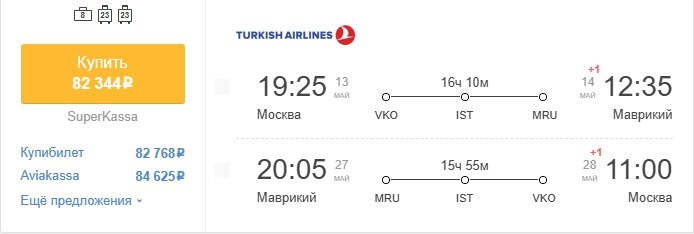 ✈️Москва - Маврикий (Маврикий), пересадка в Стамбуле, туда и обратно, с багажом за 82350 рублей