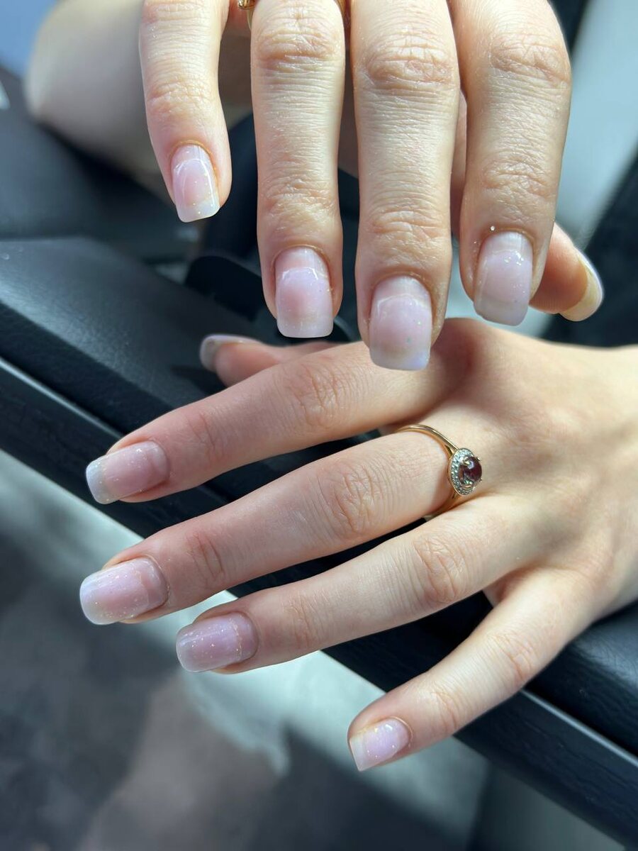 🖤🖤🖤🖤🖤🖤🖤🖤 А здесь схожая ситуация с кожей рук и кутикулой. Но носка хорошая. (5 недель и 2 дня) Масштаб работы: 🖤Выполнили комбинированный маникюр; 🖤Укрепили ноготки гелем с блёстками; 🖤Увлажнили кожу рук и кутикулы молекулярным маслом.