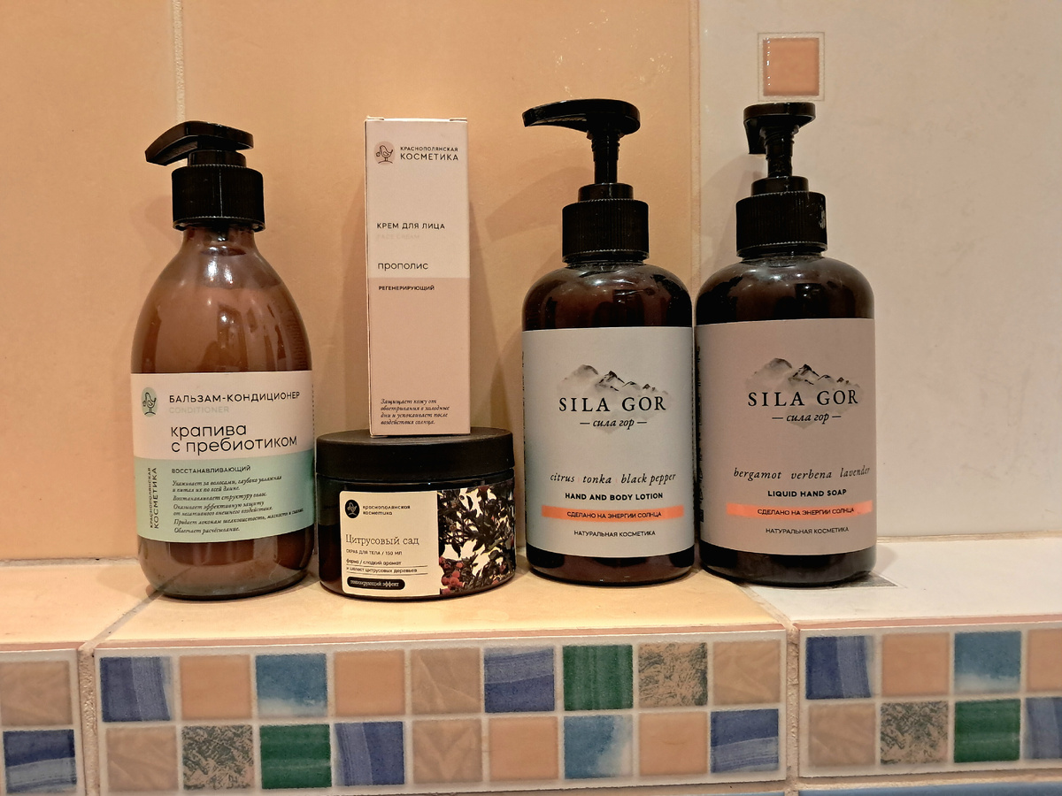 Я очень хрестоматийная женщина — люблю всевозможные баночки, тюбики, флакончики и пузырьки, с интересом пробую новое, поэтому в путешествиях всегда обращаю внимание на локальную косметику. И работаю тем самым благодарным туристом, которого очень легко раскрутить на что-то избыточное. В Красной Поляне для этого были все предпосылки — там есть местный бренд «Краснополянская косметика», симпатичные бутики которого легко найти и на одноименном курорте, и в самом Сочи... Вот только, заглянув туда, я обнаружила, что никакого уникального предложения нет — и все эти средства преспокойно продаются в Москве! Более того, многие из них я уже пробовала. Ну, так получилось. Ещё прошлой весной или летом, кажется, я обратила в «Золотом яблоке» внимание на флаконы со смешным названием Sila Gor — ух, обожаю написанные латиницей русские слова! — и купила на пробу шампунь и бальзам для волос с приятным ароматом бергамота, лаванды и вербены. Шампунь категорически не понравился, очень плохо мылился и пром