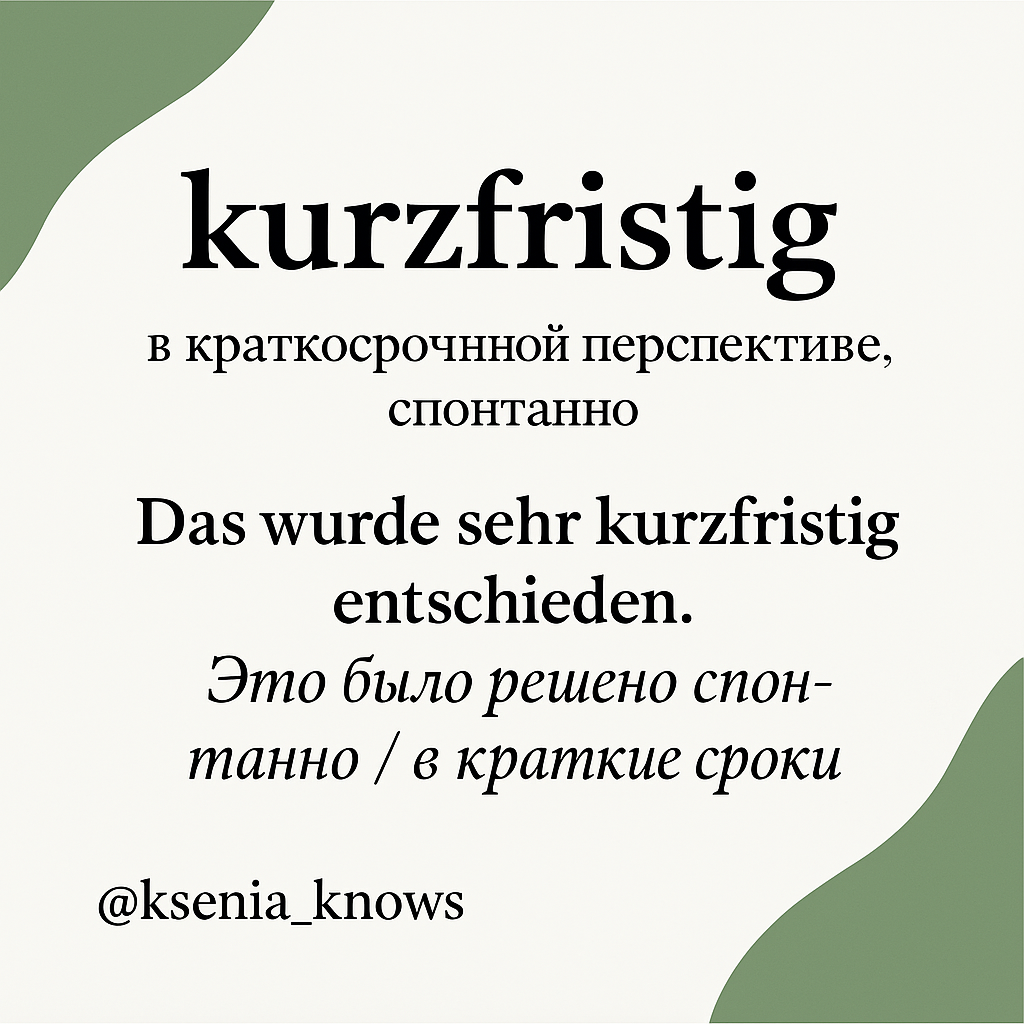Если Вы только начинаете учить немецкий или хотите обогатить лексику — вот 10 слов на букву K, которые реально пригодятся. Ниже — пример в контексте, перевод и карточки для сохранения. 📍 Wir haben das Treffen kurzfristig organisiert.