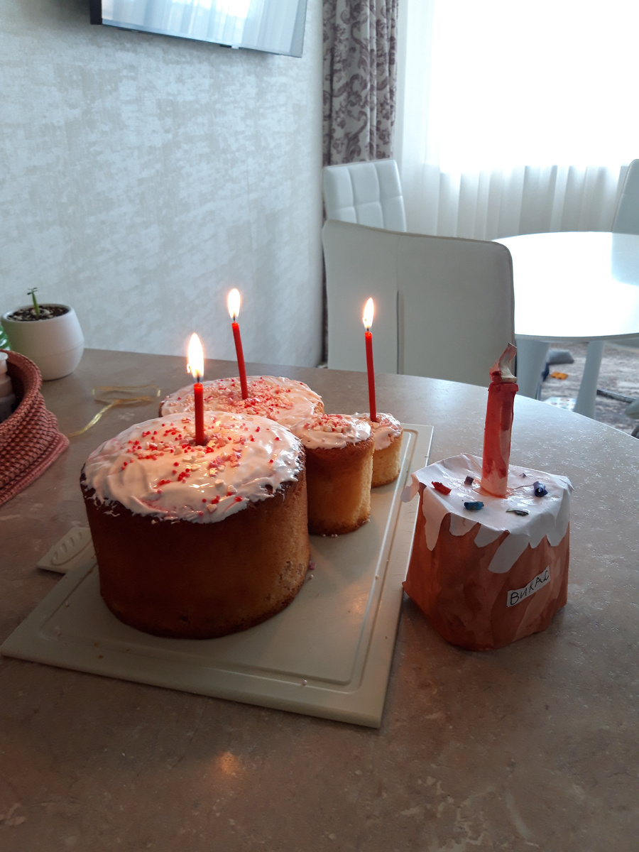 Выполнила свой материнский долг за выходные, испекла куличи, сходили в храм