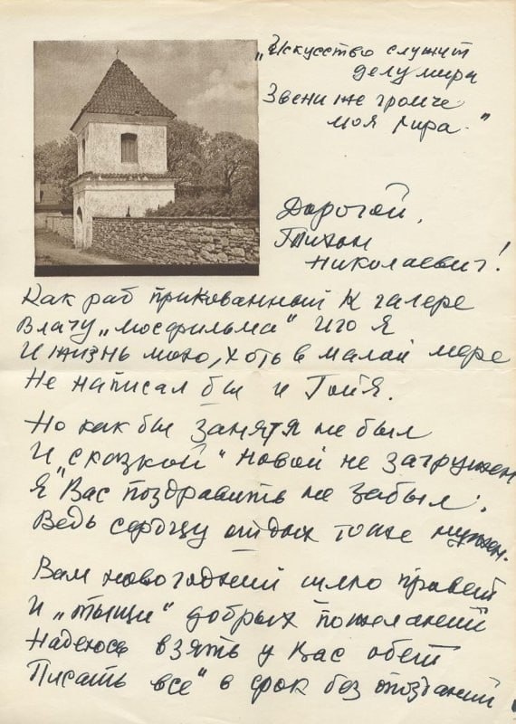 125 лет со дня рождения Александра Лукича Птушко — режиссёра, художника и одного из пионеров советской кинофантастики и анимации. Его имя связано с самыми разными достижениями в мире кино: в 1935 году он снял «Нового Гулливера» — первый в истории полнометражный объёмный анимационный фильм, в котором наряду с актёрами действовали куклы. Позже именно он поставил «Каменный цветок» — первую советскую игровую картину в цвете, а также «Илью Муромца» — первый в СССР широкоэкранный фильм со стереозвуком. С Музеем музыки Александра Лукича связывают материалы, отражающие участие выдающихся композиторов в работе над его фильмами. В фондах музея хранятся нотное издание популярной песенки «Моя лилипуточка» из «Нового Гулливера» и музыкальные рукописи Льва Шварца к «Золотому ключику». Сохранились и рукописи Исаака Морозова к фильмам «Сампо», «Сказка о потерянном времени», «Алые паруса». Над своим последним фильмом «Руслан и Людмила» Птушко работал вместе с Тихоном Хренниковым. Их переписка, а так