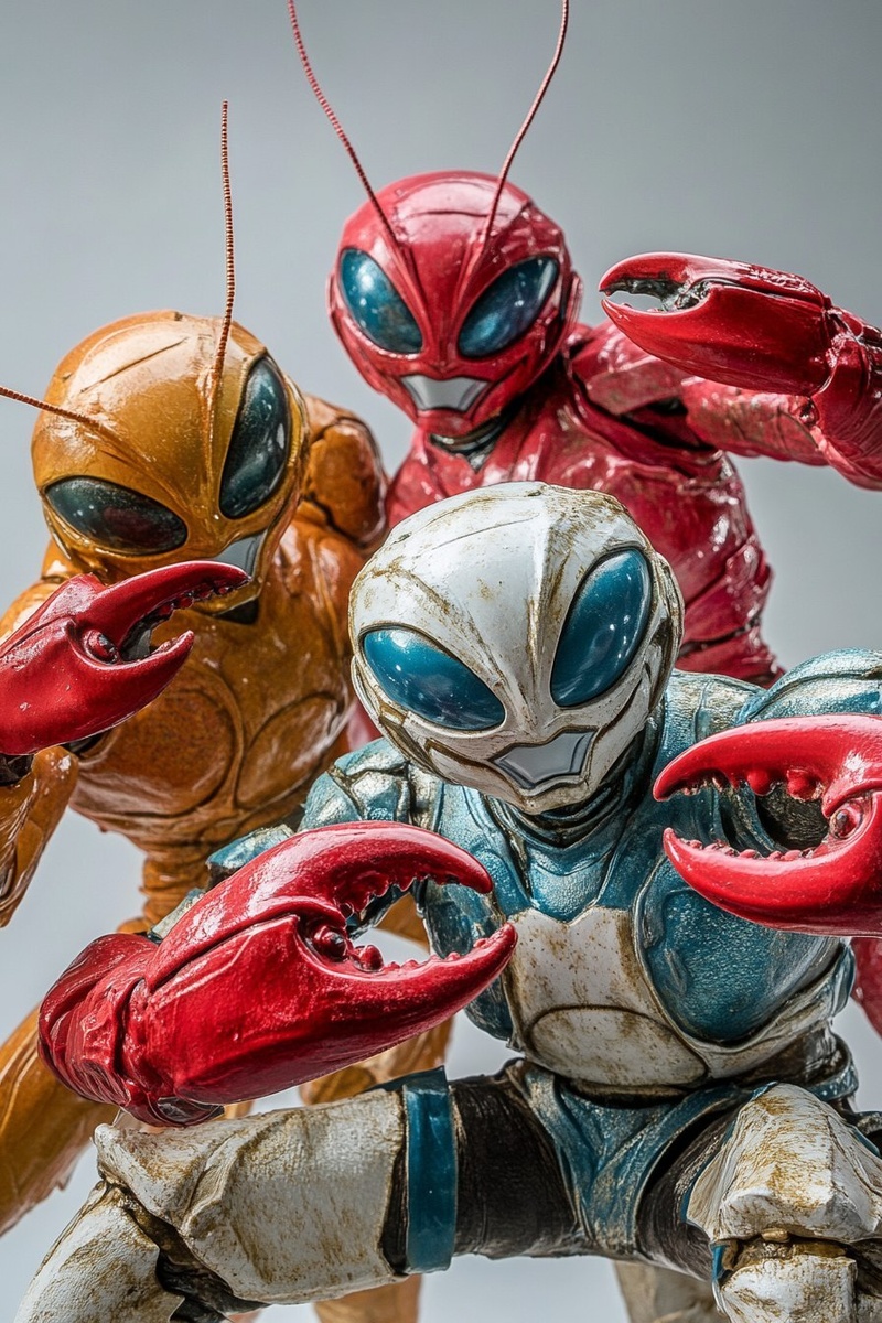 Создано на основе запроса: Crustacean Power Rangers in a crab pose.