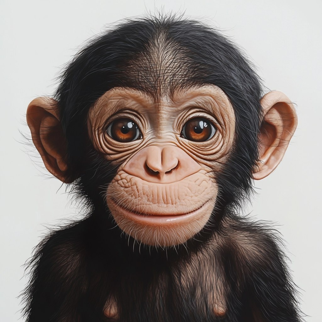 Создано на основе запроса: baby ape details hair , michelangelo paintings style , realistic , white background