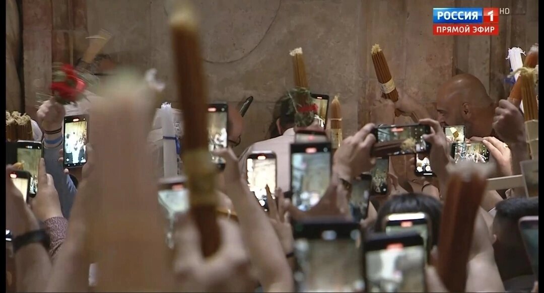 Трансляцию схождения Благодатного огня в прямом эфире осуществлял наш федеральный канал.