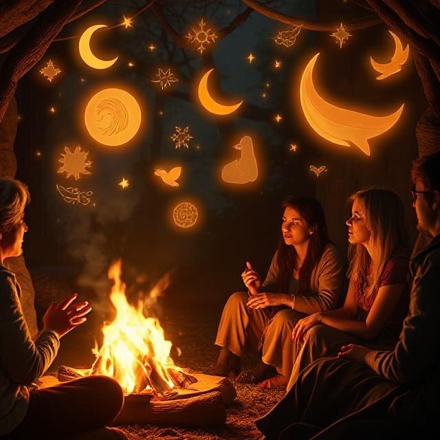 Ещё с тех времён, когда люди сидели у костра, а старейшины передавали мудрость через сказки. Когда ты слушаешь историю: Мозг переживает историю как свой опыт.