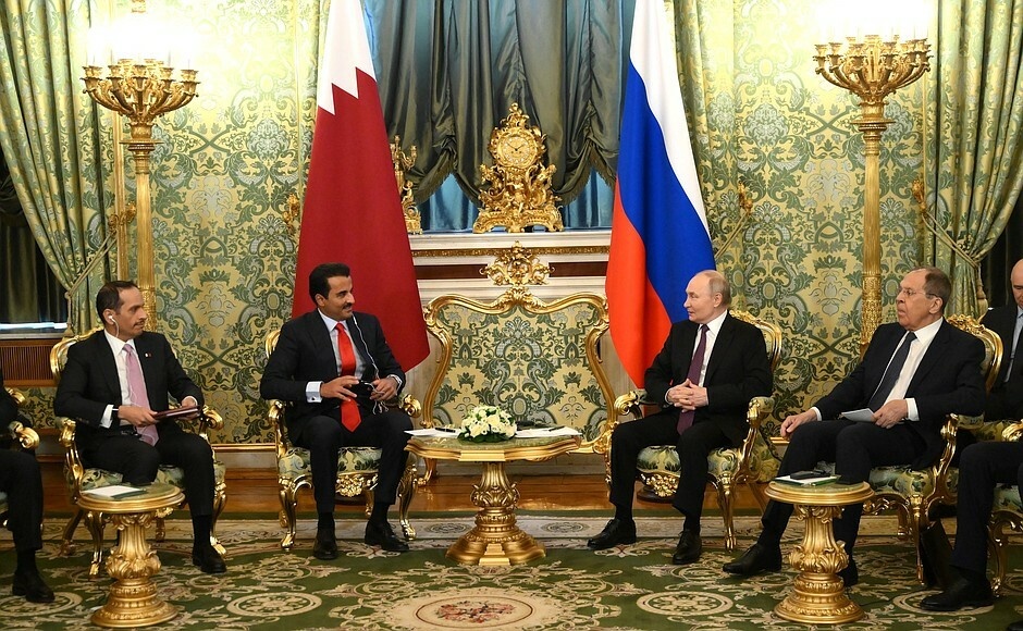 В Кремле прошли переговоры Владимира Путина с Эмиром Государства Катар Тамимом Бен Хамадом Аль Тани, который находится в России с официальным визитом. Переговоры начались с беседы в узком составе. С российской стороны в ней приняли участие Министр иностранных дел Сергей Лавров, Министр финансов Антон Силуанов, Первый заместитель Председателя Правительства, председатель российской части совместной Российско-катарской комиссии по торговому, экономическому и техническому сотрудничеству Денис Мантуров, помощник Президента Юрий Ушаков, глава Чеченской Республики Рамзан Кадыров, председатель Центробанка Эльвира Набиуллина и главный исполнительный директор, председатель правления компании «Роснефть» Игорь Сечин. Международные консультации продолжились в расширенном составе в формате официального завтрака. По окончании встречи в присутствии Владимира Путина и Тамима Бен Хамада Аль Тани состоялась церемония обмена документами, подписанными по итогам переговоров. * * * Начало российско-катарских