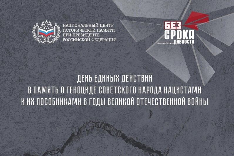 19 апреля в России пройдет День единых действий в память о геноциде советского народа нацистами и их пособниками в годы Великой Отечественной войны. Цель мероприятия – сохранение исторической правды о преступлениях нацистов и их пособников в отношении мирных советских граждан в годы Великой Отечественной на оккупированной территории. Присоединиться ко Дню единых действий может каждый. Достаточно разместить в социальных сетях пост о своем отношении к геноциду с обязательными хештегами #безсрокадавности, #19апреля. Также можно поделиться в социальных сетях рассказом, дополненным фотографией или выдержкой из архивного документа, посвященным трагическим событиям, связанным с Великой Отечественной войной. Публикацию необходимо отметить хэштегами #БезСрокаДавности и #19_апреля, чтобы объединить усилия в сохранении исторической памяти. Напомним, в этот день 19 апреля 1943 года был издан Указ Президиума Верховного Совета СССР №39 «О мерах наказания для немецко-фашистских злодеев, виновных в уб