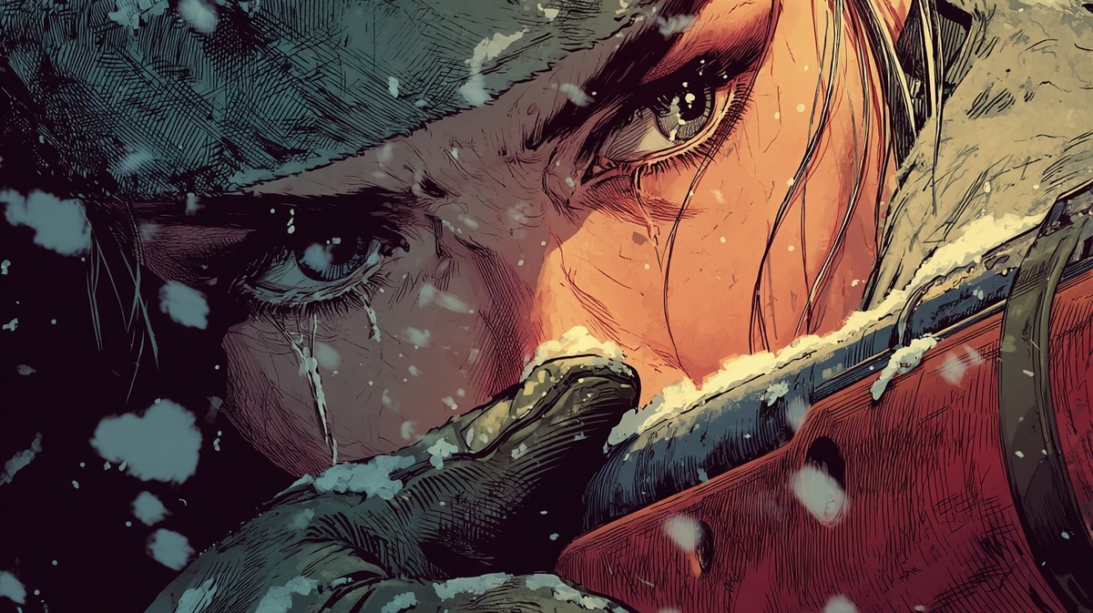 Создано на основе запроса: Stylized dramatic comic book close-up of a Soviet female sniper holding her rifle close but no longer aiming, tears running down her face, eyes full of pain, snowflakes on her skin, cold battlefield light, Arcane-style painterly emotion and cinematic shadows --- Автоперевод: Стилизованный драматический комикс крупным планом советского женского снайпера, держащей свою винтовку близко, но больше не стремится, слезы, стекающие по ее лицу, глаза, полные боли, снежинки на ее коже, холодный свет на поле битвы, эмоции живописного стиля за тайной Как тебе эта генерация? 🤔 https://dzen.ru/id/65c0c65c86e4f837c27b24d7 #ИИ #AI #нейросеть #midjourney #art
