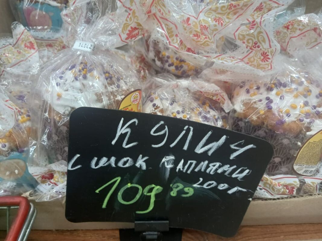 Супермаркеты. Во всех супермаркетах города можно найти разнообразные куличи. Как местных производителей, так и из соседних областей. Большинство произведено в Волгограде или Ростове. Стоимость маленького кулича начинается примерно от 45-50 рублей. Есть варианты и по более высокой цене: от 80 до 250 рублей. Некоторые куличи уже продаются со скидкой до 20%. Мы проверили один из таких куличей: он был мягким и срок годности ещё не истёк.