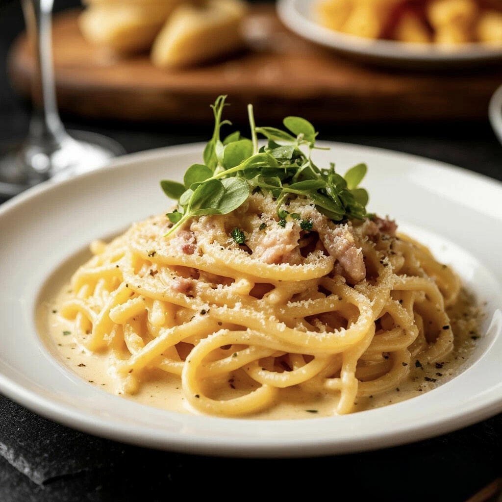 Всех приветствую 🖖 Хочу поделиться с вами рецептом пасты карбонара , не классический рецепт. С добавлением сливок которые хорошо пропитывают пасту и делают её сытнее — Выход на 1 порцию 1️⃣На хорошо разогретую сухую сковородку кладем заранее нарезанный бекон ( желательно нарезать небольшими кусочками длиной 3-4 см) 2️⃣Хорошо обжариваем бекон 3️⃣Добавляем мелком порубленный чеснок 4️⃣ Варим спагетти, в кипящей подсоленной воде, до состояния Al dente, после готовности сливаем воду и добавляем к нашей пасте 5️⃣Добавляем сливки , и протушиваем до загустения 6️⃣Выключаем огонь и добавляем один желток куриного яйца 7️⃣В конце добавляем соль и перец 8️⃣Подаем нашу пасту посыпав натертым пармезаном В карбонару лучше всего использовать грудинку панчетту , но можно и взять обычный бекон Для пасты вы можете использовать как спагети , так и фетучини, тальятелли и лингвинни. Сливки для пасты лучше всего брать пожирнее В пасту добавляют много дробленного черного перца , чтобы усилить вку