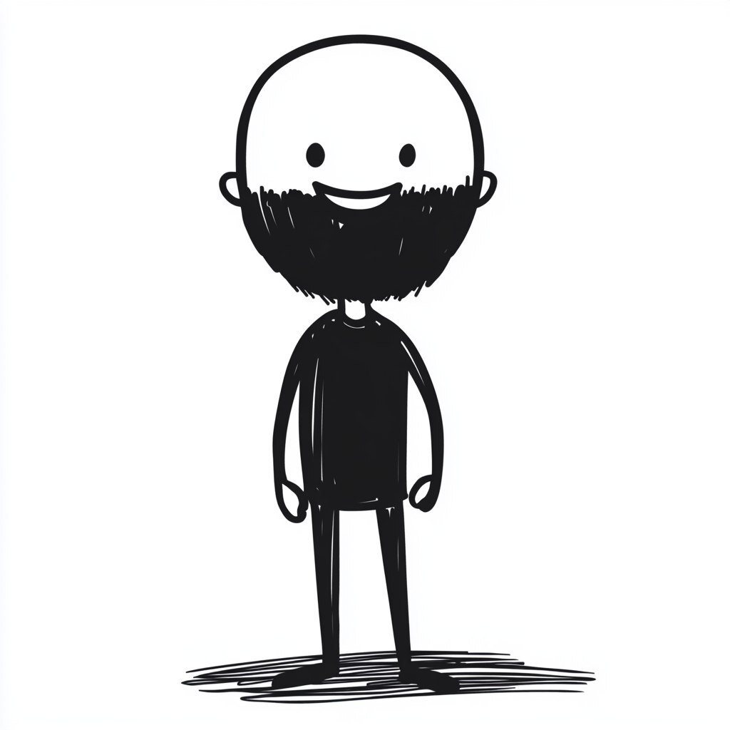 Создано на основе запроса: A bald, athletic Black bearded stick figure man standing and facing forward with a humorous, playful expression