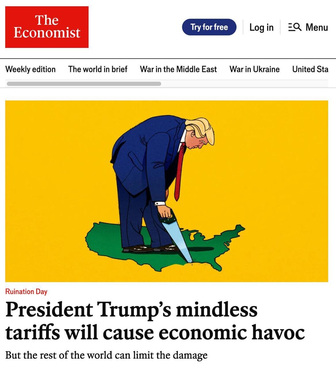 🇺🇸💔 When the U.S. celebrated Independence Day, the EU was feeling more like it was Independence Day... from their wallets! The Economist dropped a cover with Trump literally sawing the U.S. away from the rest of the world. Yikes! 😳 Here’s the lowdown on tariffs and global reactions so far: ▪️ The dollar just took a nosedive, hitting a 10-year low against the euro—down over 2%! 📉 ▪️ Germany's facing a “financial disaster” with 20% tariffs. Bild reports it could cost them €200 billion over four years, plus a GDP drop of 1.5% by 2028. Ouch! 😬 ▪️ The total hit for the EU? A whopping €750 billion! 💸 ▪️ Across the pond in Britain, they're bracing for tax hikes to dodge recession thanks to these new U.S. tariffs. Stay tuned—this rollercoaster isn’t stopping anytime soon! 🎢 #GlobalEconomy #TariffTalk