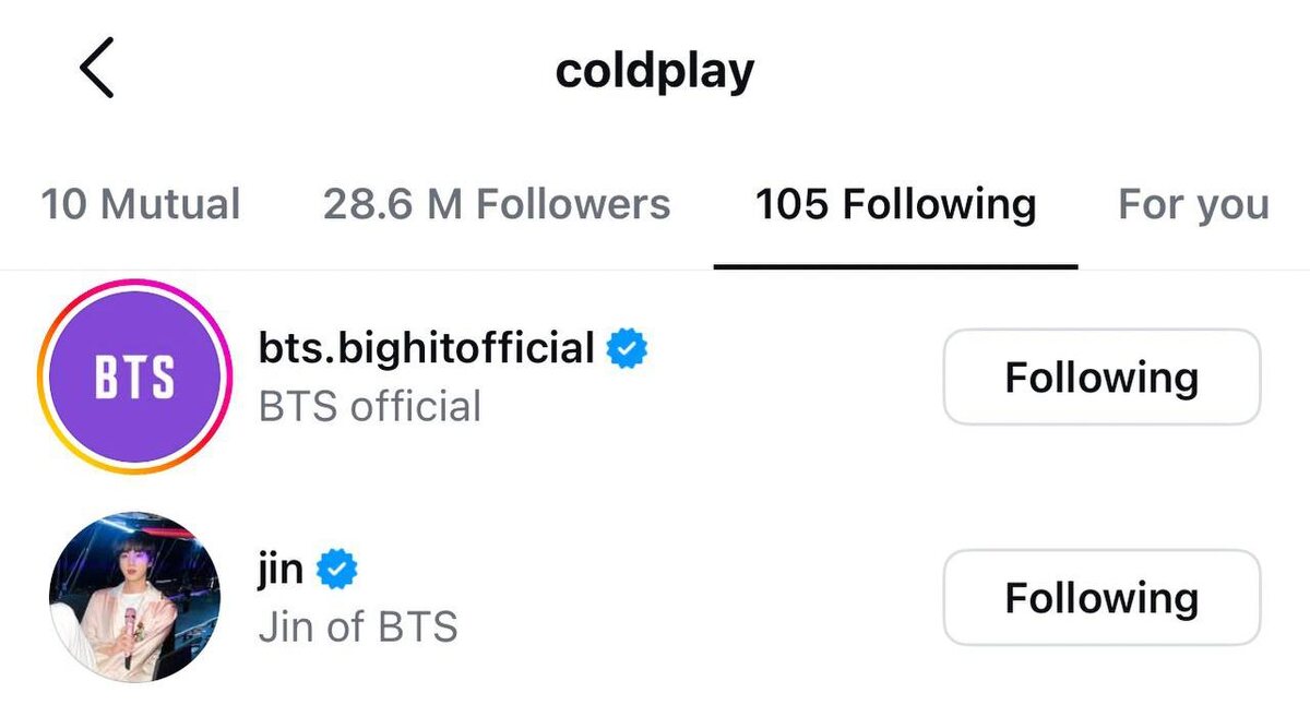 🍊 Coldplay теперь подписаны на Джина в Instagram.