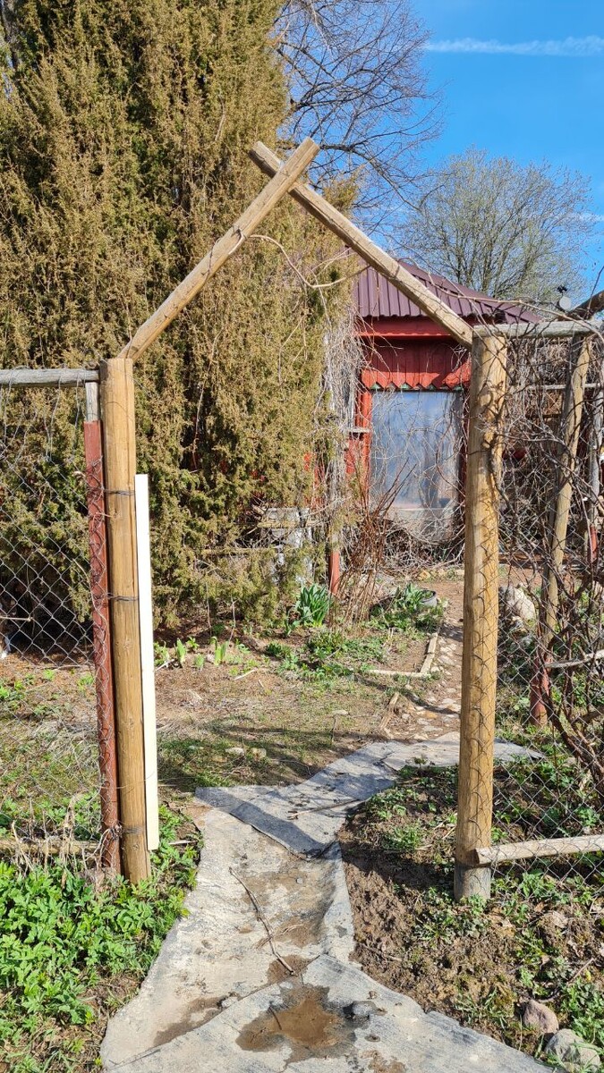 Маша попросила сделать калитку, чтобы маленькая собачка Юки не удирала. Ну вот, за пару дней управилась, покраска процесс притормозила.