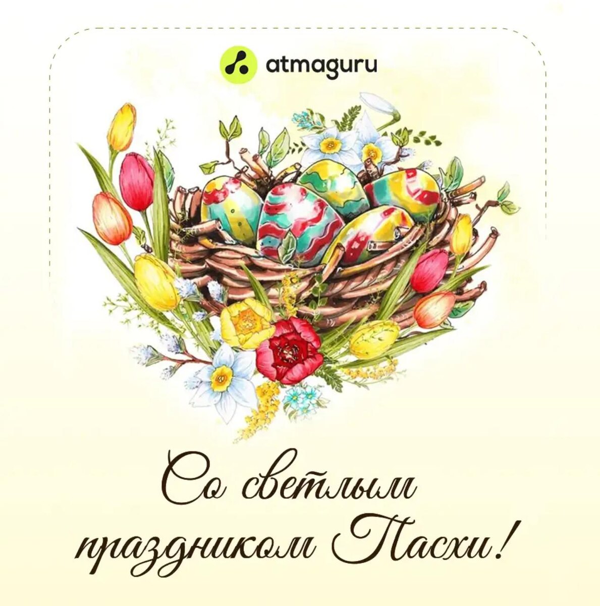 Светлой Пасхи! Команда Atmaguru желает вам спокойствия, ясности и вдохновения.🥚 Пусть этот день наполнит вас силами для новых идей и уверенного движения вперёд. А мы со своей стороны продолжим развиваться и радовать вас новыми полезными функциями 🙂
