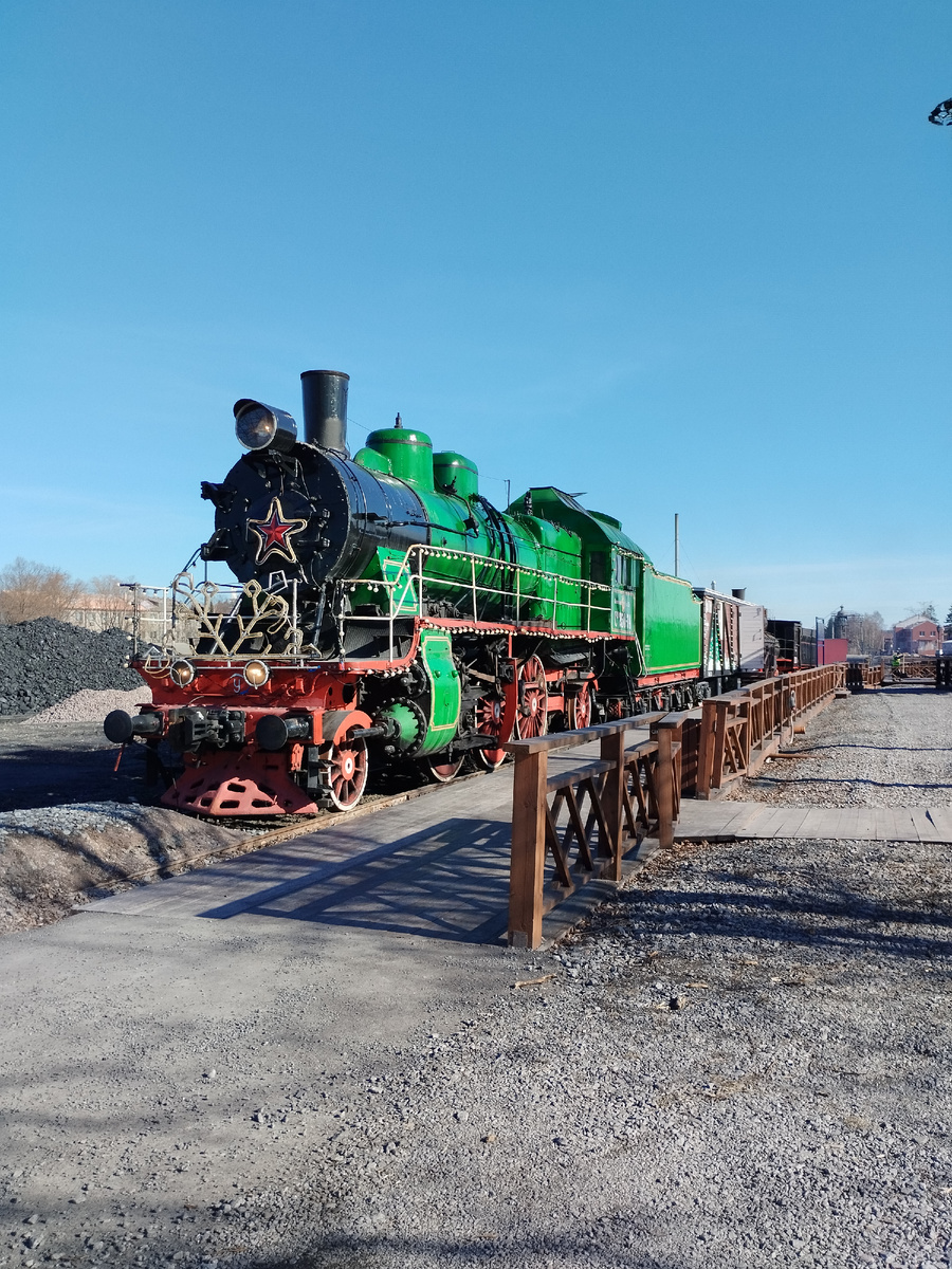 Сегодня очень насыщенный день: - ретропоезд, - горный парк Рускеала, - место съемок фильма "А зори здесь тихие", - парк Бастiонъ. В этой статье расскажу про ретропоезд. Организовала поездку петербургская турфирма Скантур и, благодаря местному гиду от этой турфирмы Александру, все организационные моменты прошли чётко и слаженно. Утром в 9-30 нас забрали у гостиницы и отвезли на ж/д вокзал. Здесь сбор группы - такие же одиночки-туристы как и мы. Теперь у туристов из группы два пути: - ехать с гидом на автобусе до парка Рускеала; - ехать на ретропоезде и уже там (парк Рускеала) нас встретит этот же гид. Вещи (и даже чемоданы, если вам сегодня вечером на настоящий поезд домой) можно оставить в автобусе с гидом. Мы выбрали ретропоезд. И сейчас я буду рассказывать о нём. От железнодорожной станции Сортавала утром отходят два ретропоезда - в 10-05 и в 10-50 (наш). Внутри эти поезда разные, говорят, который в 10-50 - лучше. Я не сравнивала, нет такой возможности, но когда мы подъез