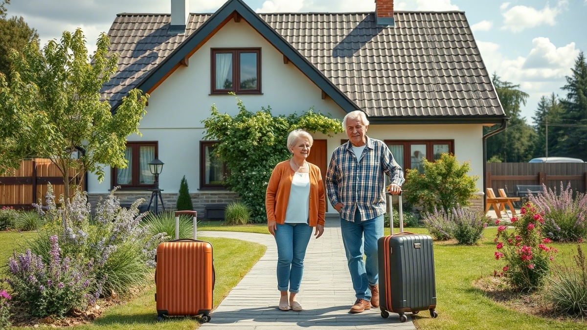 Из-за высоких кустов смородины вышел дядя Петя. Высокий, худощавый, с седыми волосами, которые он всё ещё пытался уложить в романтическую причёску. За ним следовала его жена тётя Люда — полная женщина с добродушным лицом и чемоданом на колёсиках, таким же как и у мужа.