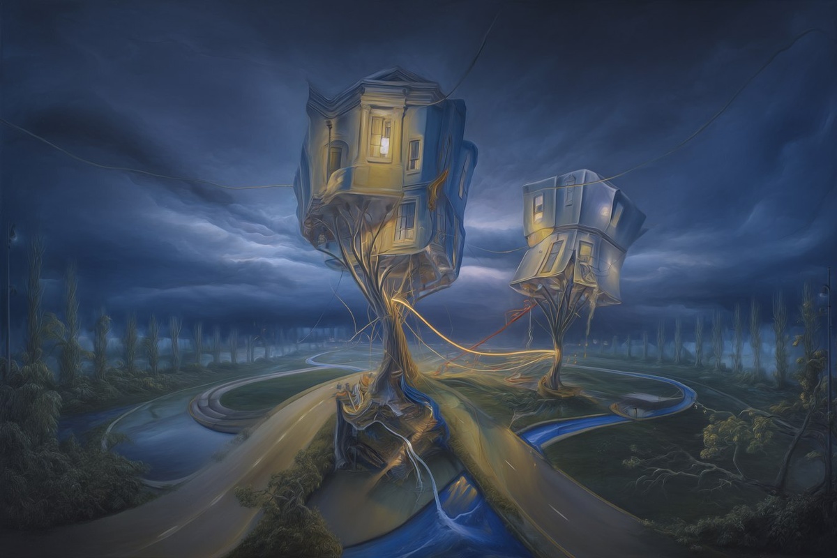 Создано на основе запроса: conceptual art paintings style, surrealism in color, born at midnight, hdr, highly detailed, style raw