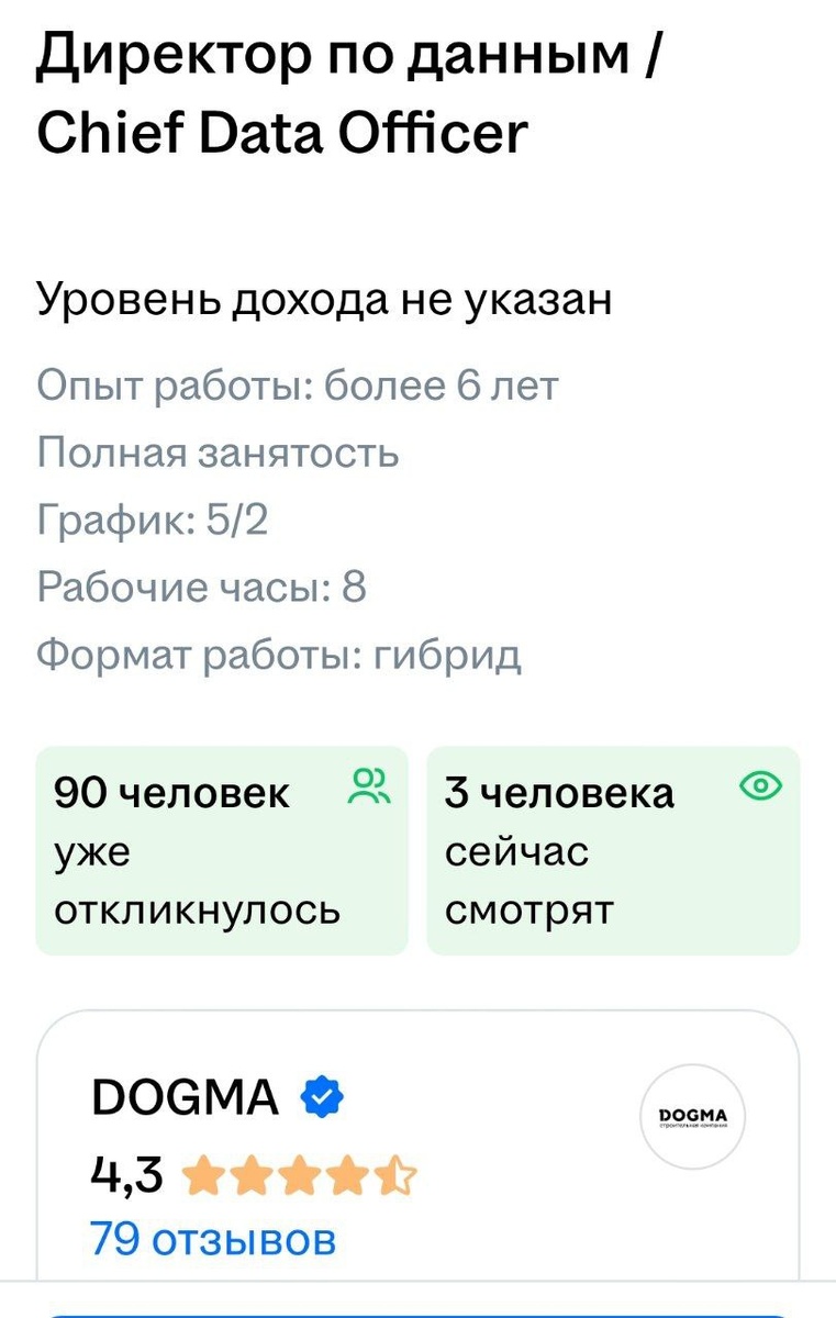 Тем временем Dogma ищет Chief Data Officer, который должен будет проповедовать среди сотрудников data-driven-культуру принятия решений