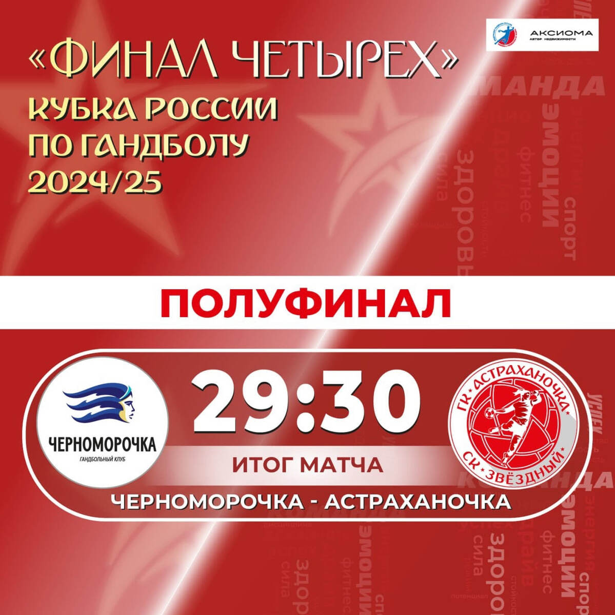 БЦ спешит с подробностями второго полуфинала женского Кубка России - "Астраханочка" победила "Черноморочку" (30:29) и впервые за 9 лет вышла в финал турнира. Манагарова на пути к восьмому Кубку России: "Ростов-Дон" легко сбросил "Ладу" в кювет Снова не то? Не успели остыть эмоции возмущения сторонних болельщиков от содержания первого полуфинала, как "Черноморочка" дебютировала в "финале четырёх" с 4:0 на старте. Хозяек смутила гостевая оборона 5-1, а первый мяч с игры и в равных составах они забросили лишь на 11-й минуте. Полностью "сухие" пять стартовых минут даже заставили Михаила Измайлова взять очень ранний тайм-аут. Но участи предыдущего матча эта встреча избежала. Перестройка Главная причина - оборонительное перестроение хозяек. Измайлов перешёл на активные 4-2, и это стало волнорезом для черноморских атакующих волн. В нападении же волжанки преодолели волнение первых минут, а также на руку им сыграли участившиеся потери "Черноморочки". Хозяйки пользовались своими главными орудиям