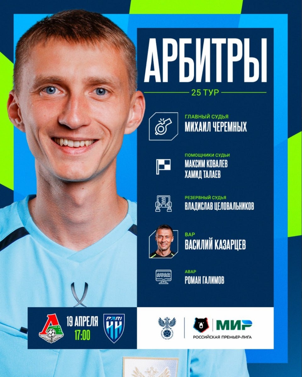 Локомотив-пари Н-Н 3-0 ❌ 28 мин. Не показ К.К игроку №22 команды Пари Н-Н (серьёзное нарушение правил) Изменил решение после просмотра ВАР - 0,5 балла ❌ 86 мин. Не показ К.К игроку №77 команды Локомотив (серьёзное нарушение правил) - 0,5 балла ВАР ошибочно не вмешался Оценка: 7,4