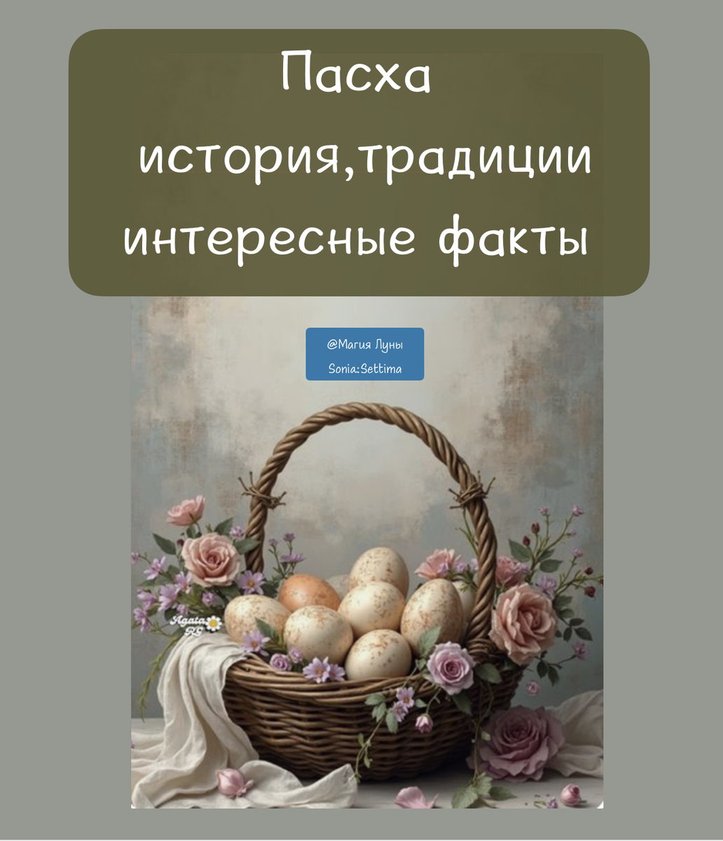 Пасха: история, традиции, правила, интересные факты История 🌷 Пасха — один из главных христианских праздников, установленный в честь воскресения Иисуса Христа. Праздник имеет глубокие исторические корни и тесно связан с еврейским праздником Песах, который отмечался в память об исходе евреев из Египта. 🌹 Праздник связан с древними празднованиями весны, связанными с плодородием и циклом жизни. В основе праздника лежат такие праздники и мероприятия, как: Песах Лельник/Красная горка Паска Пасхетъ 🌹 Согласно Новому Завету, Иисус Христос был распят на кресте в пятницу, которая получила название Страстной. На третий день он воскрес, и это событие стало основой христианской веры. Готовятся к празднику заранее В Чистый Четверг убираем дом, в Страстную Пятницу целуем плащаницу. В ночь с субботы на воскресенье святим пасхальные корзинки с куличами, 🌹 Древние языческие корни Пасхи Задолго до принятия христианства славяне отмечали весенние праздники, связанные с пробуждением природы и культом