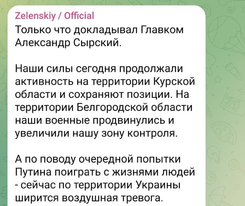 В ответ на пост Зеленский проигнорировал предложение Путина о пасхальном перемирии. Вместо этого он заявил о продвижении ВСУ в Курской и Белгородской областях