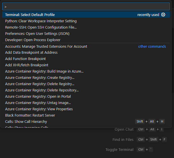 Если вы работаете в среде Windows и хотите использовать Git Bash в Visual Studio Code, то этот шаг поможет вам сделать терминал более удобным. Важно помнить, что терминалы в Windows (такие как PowerShell и cmd) отличаются от Linux и MacOS, поэтому некоторые команды могут работать иначе. Например, в начале запуска кода будет происходить через PowerShell. Чтобы установить Git Bash в качестве основного терминала в VS Code, выполните следующие шаги: Нажмите клавишу F1 и вводим команду Terminal: Select Default Profile Выбираем из списка Git Bash Использование Git Bash может значительно упростить вашу работу, особенно если вы привыкли к функциям Linux-терминалов. Он поддерживает множество команд, привычных для пользователей Linux, и позволяет использовать мощные возможности Git более эффективно. Некоторые пользователи сталкиваются с проблемами активации виртуальных окружений в Git Bash. Если после установки Git Bash у вас возникают трудности, попробуйте следующие советы: Убедитесь, что вы п