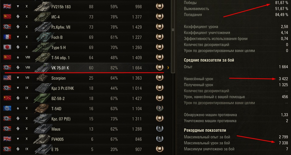 Несколько дней назад я оформил 3 отметки на прекрасном тяжелом танке за боны - VK 75.01 (K).