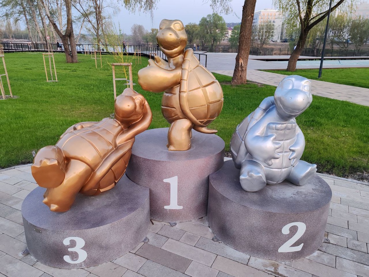 На набережной «Берега» спортсменов ждут три черепашки