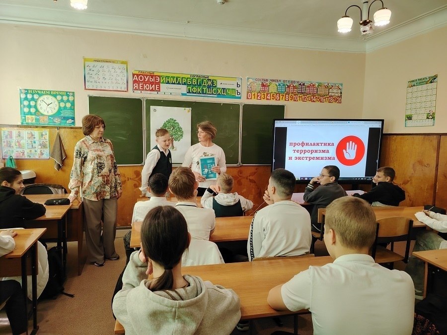 Сотрудники Яблоновской городской библиотеки №3 на базе МБУ СШ №15 провели информационный час «Осторожно – терроризм!» для учащихся 7 – 8 классов (Горнова, Т.Г. - зам. директора по ВР)