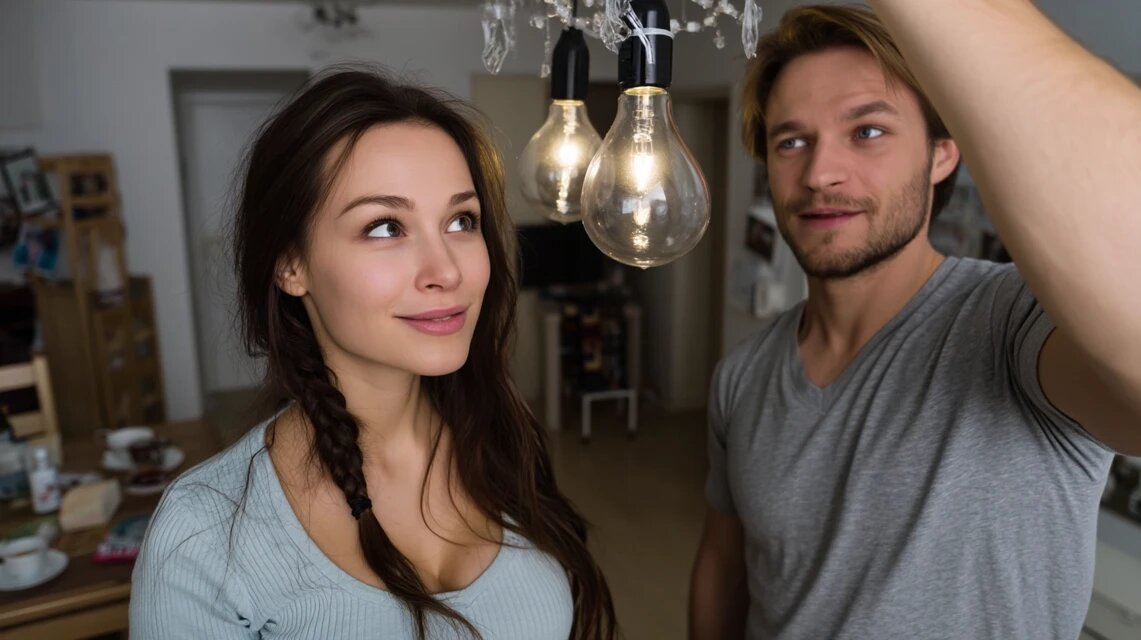 Вечер окутал квартиру мягким полумраком. Анна наблюдала за Сергеем, который сосредоточенно возился с новой люстрой в гостиной. Его широкие плечи напряглись, когда он потянулся вверх, закручивая последний винт.