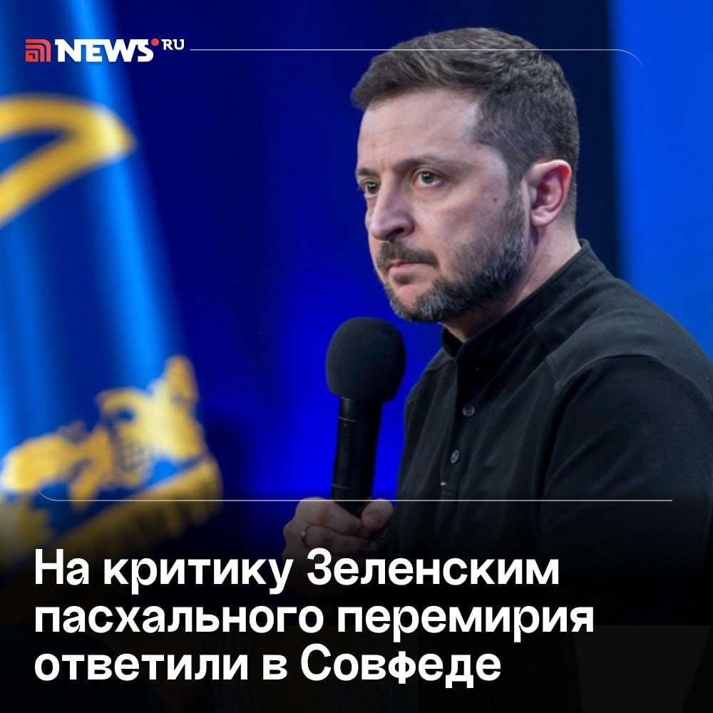 В ответ на пост Зеленский отверг предложенное Путиным пасхальное перемирие и назвал его «попыткой играть жизнями людей». По его словам, в 17:15 в небе были зафиксированы российские дроны (перемирие было объявлено с 18:00). В Совфеде рассказали NEWS.ru, что Зеленский не смог бы соблюдать пасхальное перемирие, так как не контролирует ВСУ. «Там очень много самостоятельных нацистских отрядов, которые могут сделать все наоборот», — заявил сенатор Джабаров. ⭕ Подписаться | Прислать новость | Буст