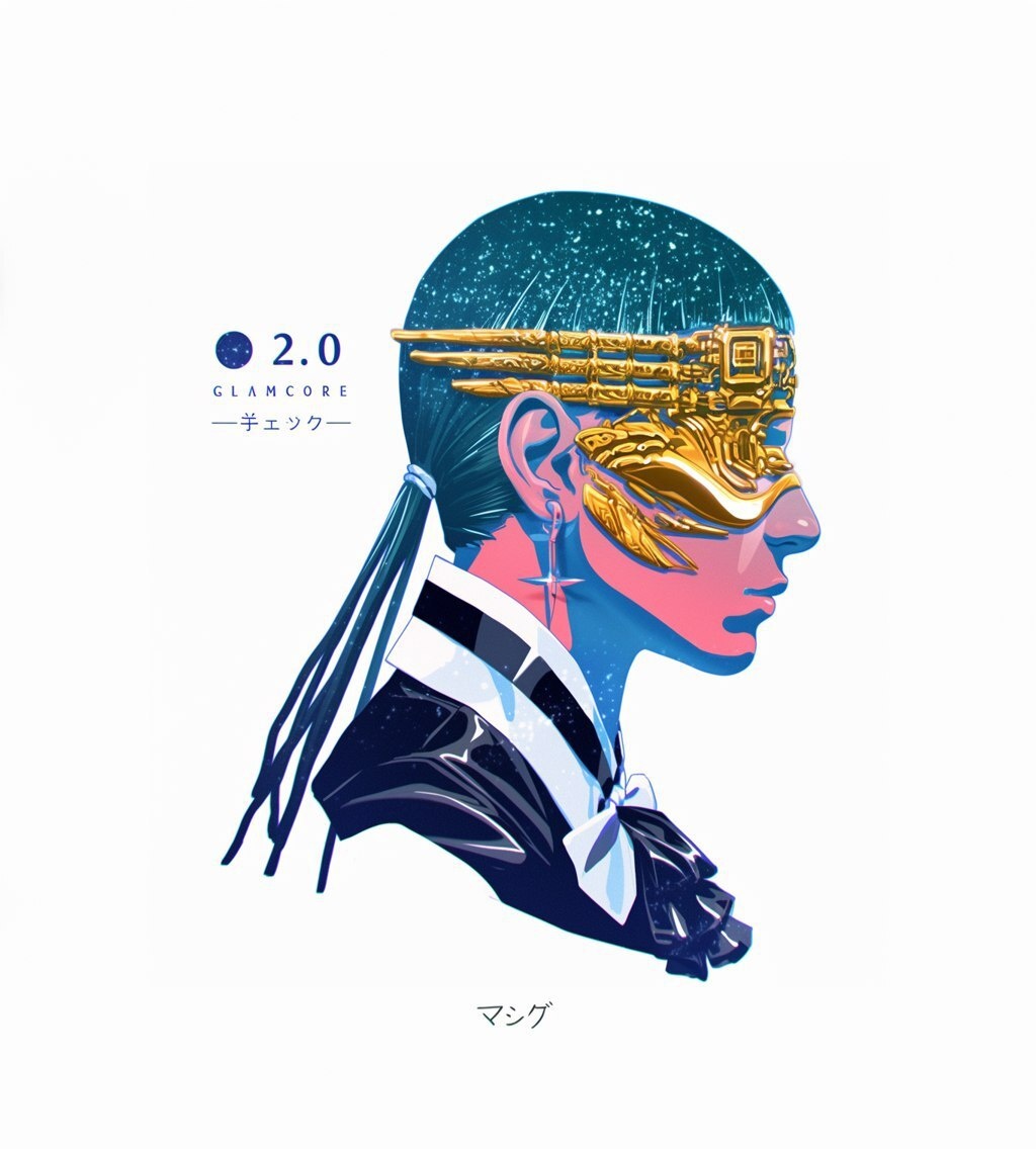 Создано на основе запроса: Graphical user interface in bold cyber letters "GLAMCORE 2.0" new world order of coders by crustaceans