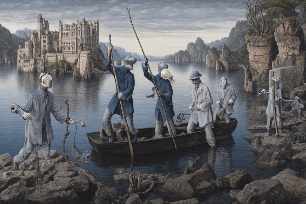 Создано на основе запроса: conceptual art paintings style, surrealism in color, a dangerous harbor, hdr, highly detailed, style raw