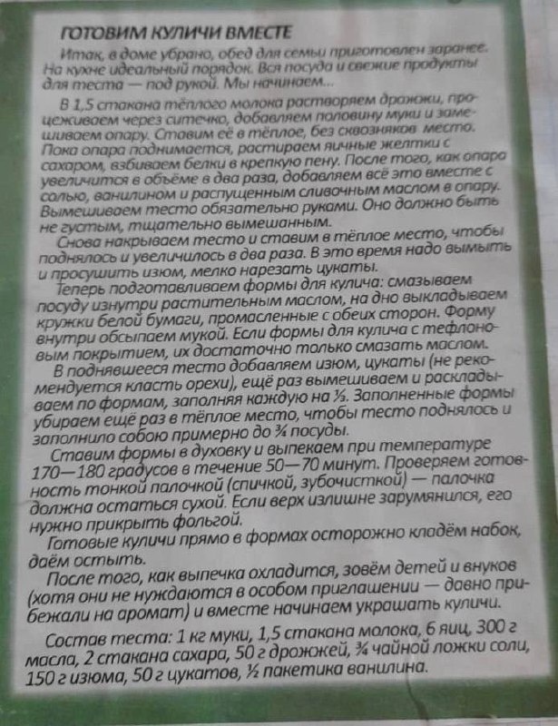 🪷Пасха — это время особенного тепла и уюта для каждого православного человека, когда семьи собираются вместе и готовятся к празднику😌 🪷До этого замечательного дня остается еще немного времени. Одним из непременных атрибутов праздничного стола является кулич, который каждый год делается с любовью и заботой😌 🪷Хочу поделиться с вами, рецептом кулича. Рецепт нашелся ещё давно в каком-то журнале и чаще всего готовится в семье теперь только он😌