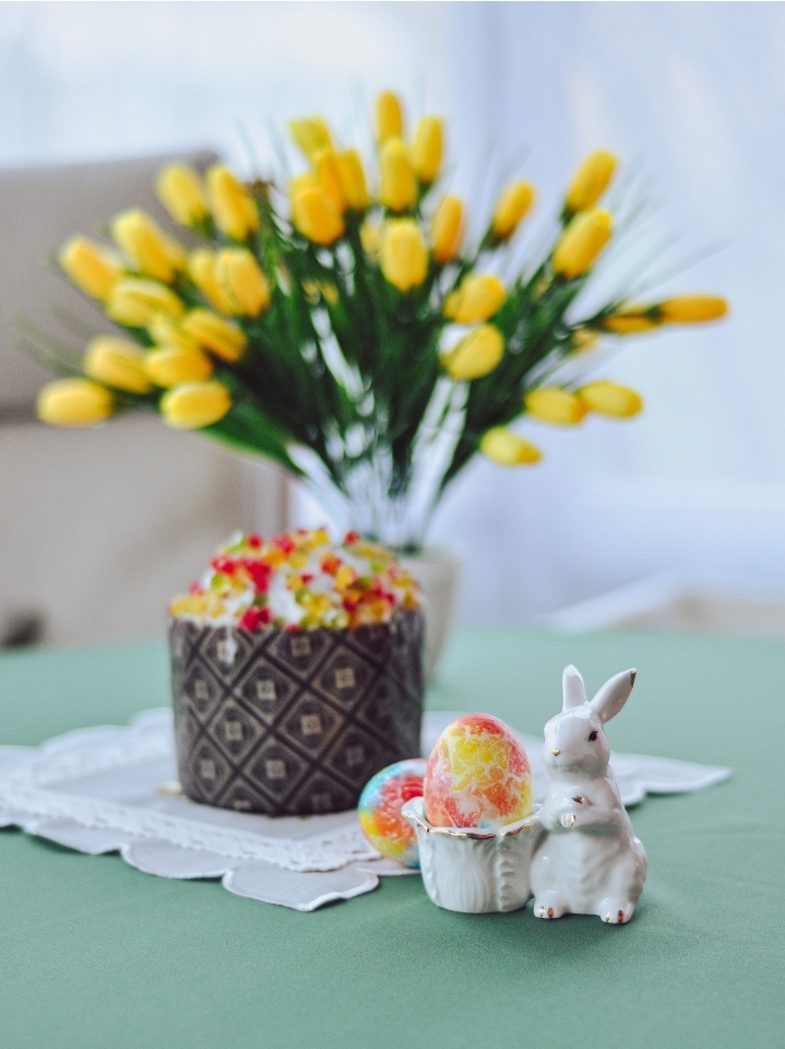 Дорогие друзья, в этот светлый день пусть сердце поёт, а душа расцветает! В это раз захотелось много жёлтого и зелёного. Хотя с оформлением яиц не получилось 😅 Но зайчику, похоже, понравились мои очередные художественные опыты. Я пару лет назад уже использовала этот метод. И получились какие-то космические. Но, честно говоря, мне сложно объяснить зачем я купила этого зайчика 🙈 Почему-то так пришёлся по душе. Да и скидка была замечательной. В жизни выглядит даже лучше, чем на фото с маркетплейса. Если в прошлом году пропустили статью про пасхальные фарфоровые красивости, предлагаю полюбоваться ❤️