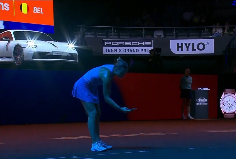Это произошло в первом сете четвертьфинала против Элизы Мертенс. Бельгийка повела 4:3 с брейком и взяла медперерыв из-за проблем с ногой. В это время Соболенко попросила судью на вышке Мириам Блей спуститься и еще раз проверить отметку. Речь шла о розыгрыше в предыдущем гейме: после удара Соболенко зафиксировали аут, благодаря чему Мертенс заработала двойной брейк-пойнт. По мнению Соболенко, мяч попал в корт. Блей отказалась спускаться, так как уже приняла решение. Тогда Соболенко сфотографировала отметку на телефон. В первом гейме после медперерыва Соболенко сделала обратный брейк и в итоге победила 6:4, 6:1.